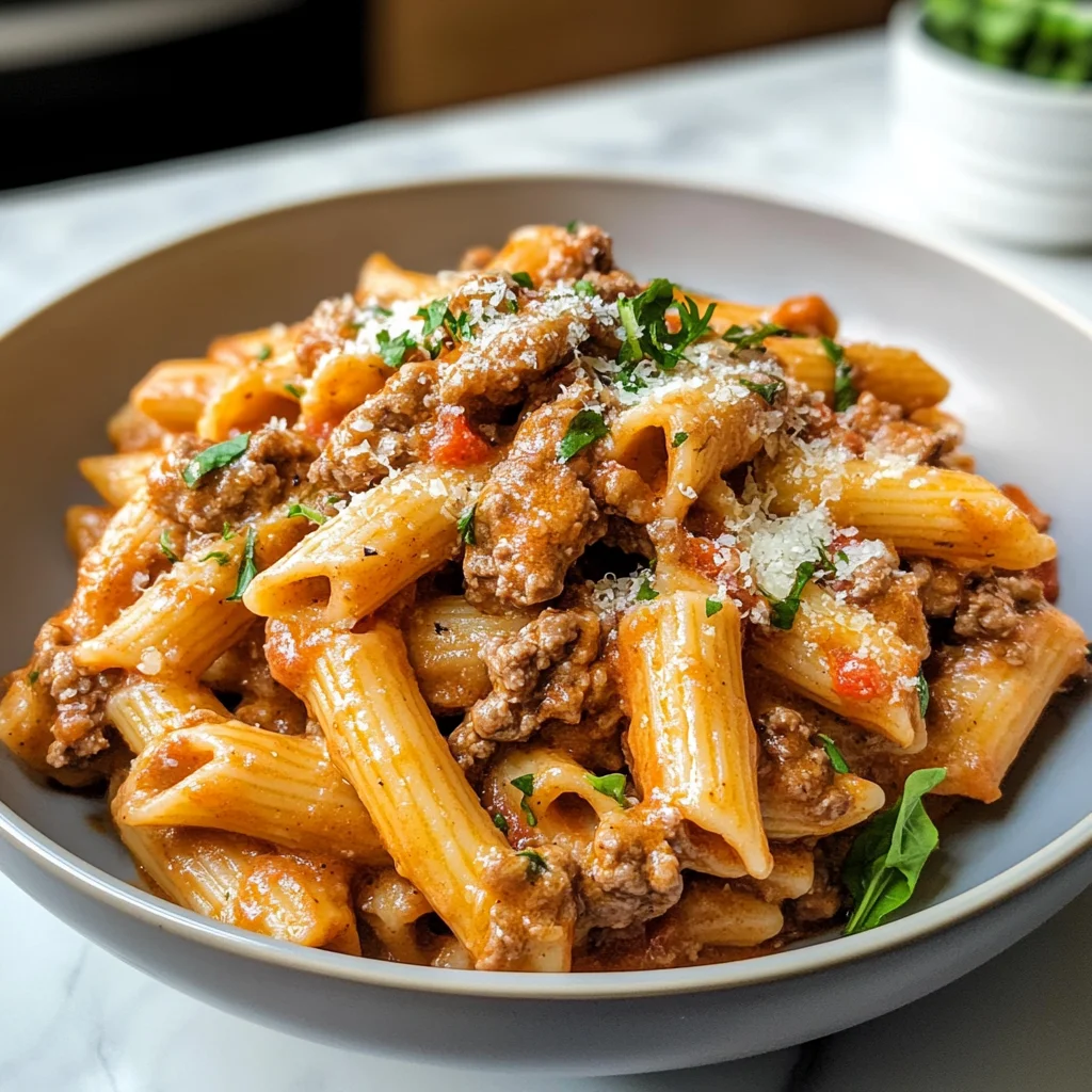 You can definitely prep some parts in advance! Cook the penne pasta and brown the beef beforehand. Just keep everything separate in the fridge. When you’re ready to eat, reheat the beef mixture and toss in your pasta with the sauce. You’ll want to add a splash of reserved pasta water to keep it creamy (nobody likes dry pasta!).