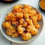 Once ready, transfer your crispy cauliflower florets onto plates and drizzle generously with that irresistible sauce for the perfect finishing touch. Enjoy every crunchy morsel!