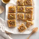 Prepare Honey Drizzle Topping: While it’s baking, combine honey with some warm water over low heat until slightly runny. Once baked and slightly cooled, drizzle this magical concoction over your bars along with chopped pistachios if desired.