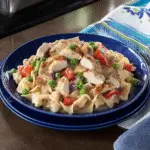Chicken a la King is a classic dish made with diced chicken in a creamy sauce, often featuring vegetables like bell peppers and mushrooms. This delicious meal is typically served over rice, pasta, or biscuits. The rich sauce combines chicken broth, heavy cream, and seasonings, creating a comforting dish perfect for any occasion. It’s an excellent way to use leftover chicken and can be customized with additional ingredients like peas or corn.