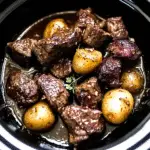 Crockpot Garlic Butter Beef Bites with Potatoes is a savory dish made by slow-cooking tender beef chunks and potatoes in a rich garlic butter sauce. This recipe combines the flavors of garlic, herbs, and spices, creating a hearty meal that’s perfect for any occasion. The slow-cooking process allows the beef to become exceptionally tender, while the potatoes absorb the delicious flavors.