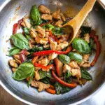 Spicy Thai Basil Chicken Stir Fry is a vibrant and flavorful dish that brings the essence of Thai cuisine right to your kitchen. With tender chicken, fresh basil, and colorful vegetables tossed in a savory sauce, this stir fry is not only quick to prepare but also incredibly satisfying. Perfect for weeknight dinners or impressing guests, it’s a culinary adventure that will tantalize your taste buds with every bite.