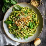 Toss Everything Together: In a large bowl, combine the cooled pasta with freshly made pesto. Stir gently until all noodles are coated evenly in that glorious green sauce.